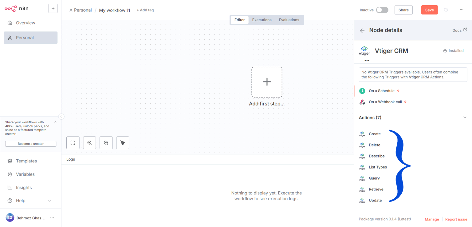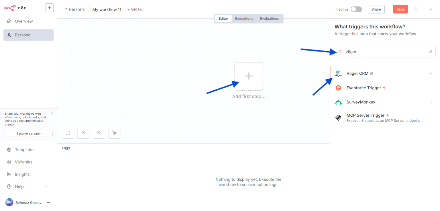 اگر با گردش کارهای Vtiger آشنایی دارید، یادگیری n8n برایتان بسیار سریع خواهد بود. n8n از یک محیط بصری کشیدن و رها کردن (Drag-and-Drop) استفاده میکند. هزاران گردش کار آماده و رایگان نیز در n8n وجود دارد که فرآیند شروع کار و توسعه اتوماسیونهای پیچیده را بسیار آسانتر میکند.